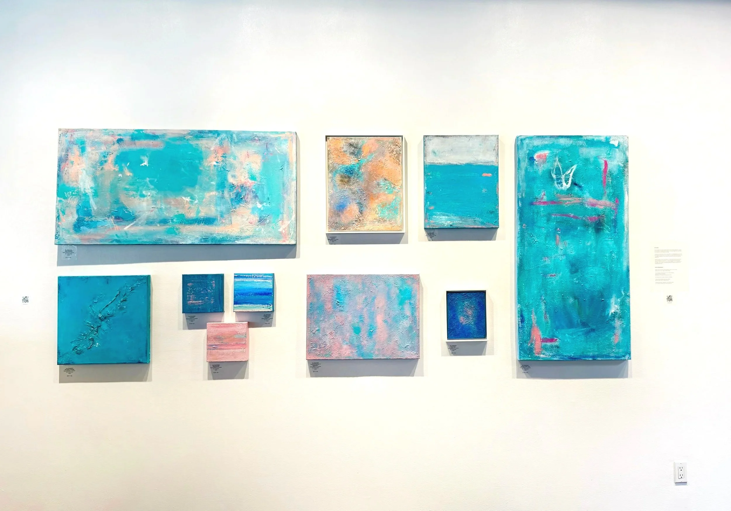 Raised between cultures, she draws on Persian symbolism, especially the recurring presence of turquoise, a colour long associated with healing, protection, and the artistic and architectural legacy of Iran. It connects her paintings to her heritage, while offering space for others to find their own meaning within them.